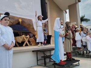 The manger, or Nativity scene, symbolizes the celebratory focus of the Christmas Season – the birth of Jesus Christ. Several Diocesan Parishes, and each Catholic school, took time to have a retelling of the birth of Jesus with young children and in some cases with live animals.