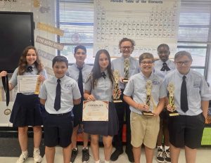 The Diocesan Catholic schools students are so good at STREAM that they excel in regional competitions. Students from St. Andrew Catholic School in Cape Coral brought home the gold at the Education Regional Science Fair on Feb. 6, at Florida Gulf Coast University in Estero. Lorie Esperance placed first in Behavioral/Social Sciences, also receiving the Marie Glasgow and AAUW Friends STEM Award, an FGCU scholarship, an APA Certificate of Achievement, and additional recognitions. Lily Corby attained first place for Environmental Engineering and a special award from AIM Engineering and Surveying, Inc.  Liam Farinelli & Xavier Darmanin placed first in Mathematics & Computational Science, receiving scholarships to FGCU. Adeline Kish received the NOAA Taking the Pulse of the Planet Award and Honorable Mention. Samuel Rau and Thomas Varela received third place in Physics and José Nasiff and Simon Arevalo also received special awards. Well done everyone!