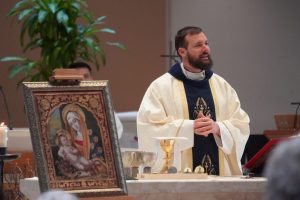 “This speaks to the victory of good over evil, grace over our weak humanness,” Father said. “Mary provides loving maternal tender presence on our spiritual journey. At the crucifixion, Jesus says to John, ‘Behold your mother,’ then to Mary, ‘Behold your son.’ It is an invitation for all of us to deepen that relationship with Mary; to help lead us to her son Jesus to save us from sin.”